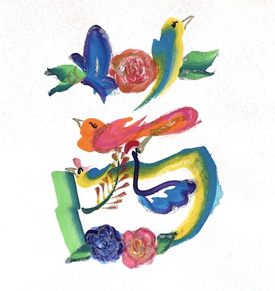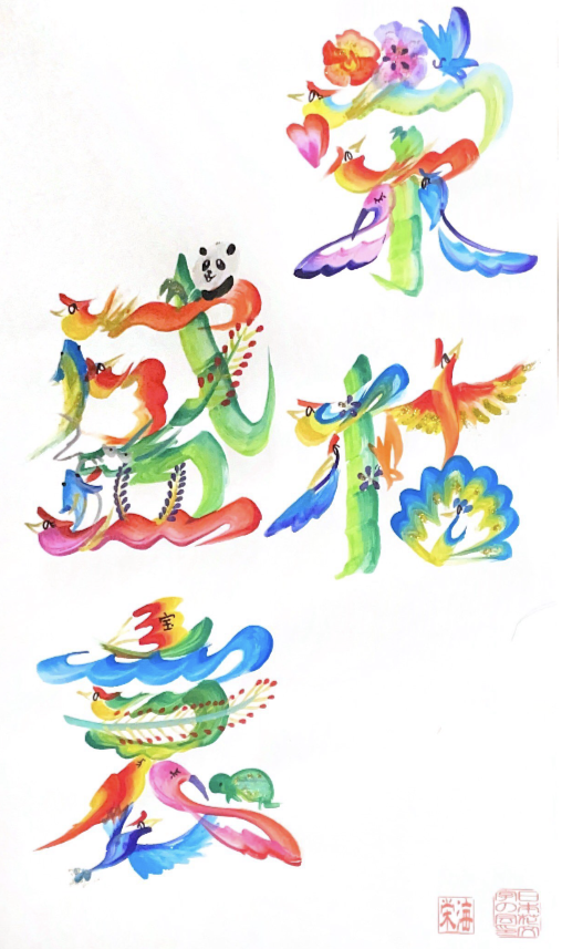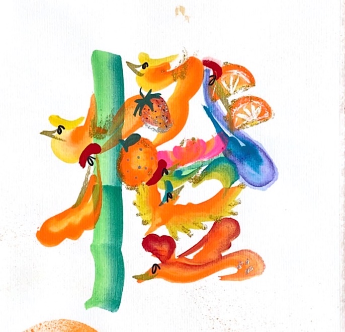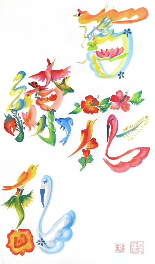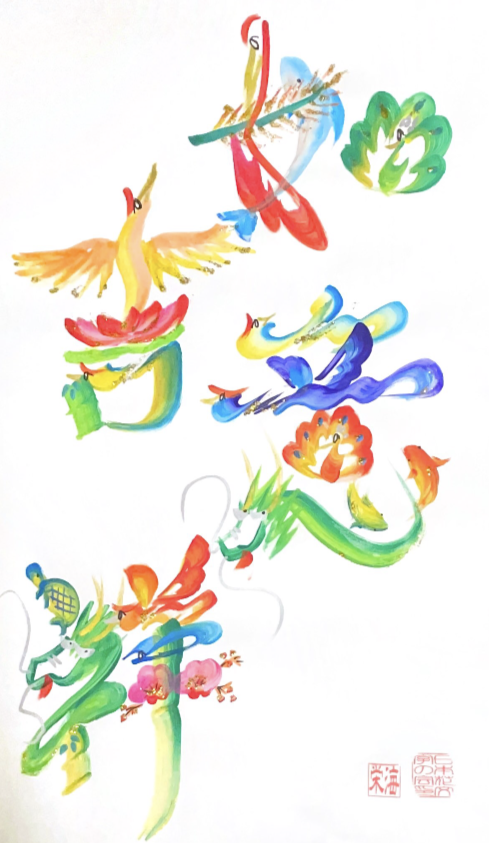 花文字とは、中国発祥で縁起の良い意味のある吉祥絵柄を組み合わせて描く華やかな文字の事。
