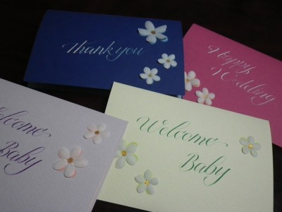 日本でも、若い女性を中心にカリグラフィーによるオリジナルカード、
