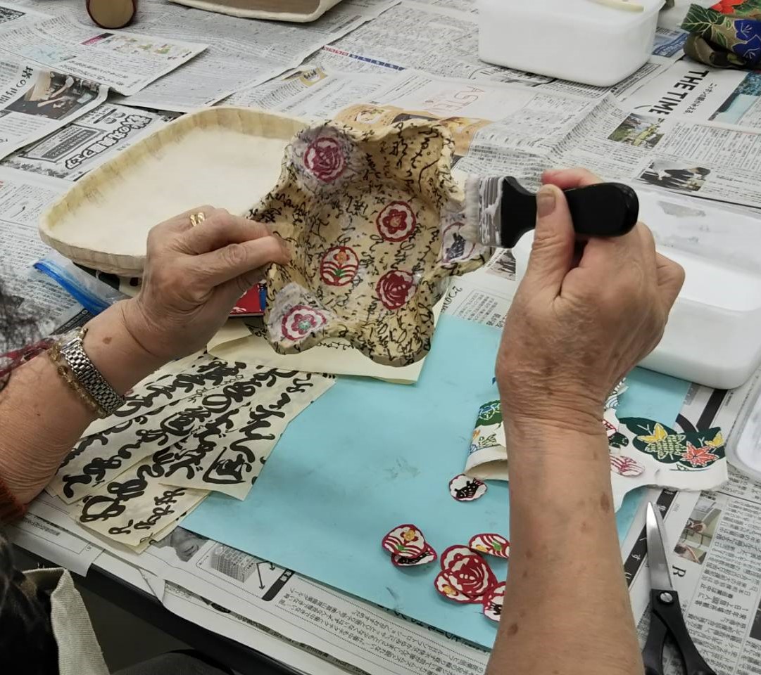 ・本講座では、それぞれお好きなかごやザルをお持ちいただき、一閑張りを基本から学ぶことができます