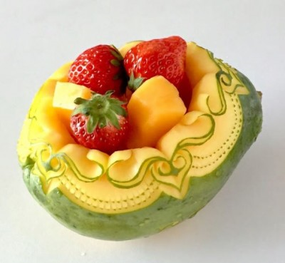 細いナイフ1本で、石鹸や果物、野菜を彫刻するタイ伝統工芸カービング。