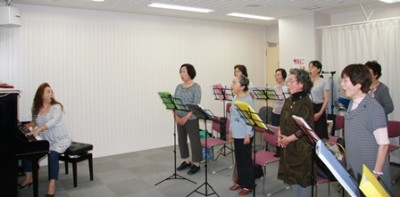 発声練習の後は、カンツォーネ、日本の歌から世界の歌まで幅広く楽しみます。