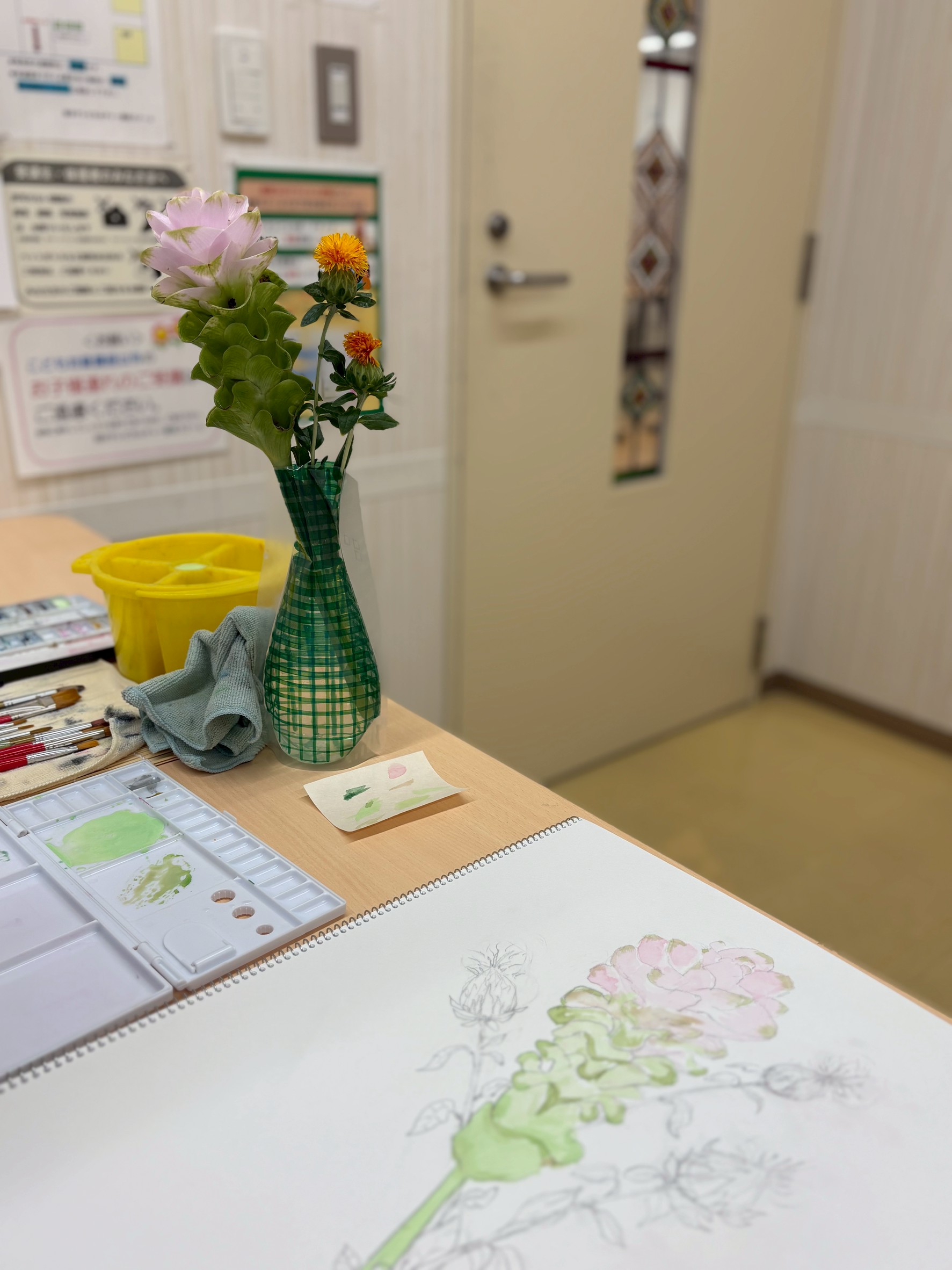 | 教材費 | 990円(3ヵ月分モチーフ代)※希望者は初心者道具セット5,000円程度 ※初めはお持ちの水彩絵の具でも可 |