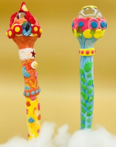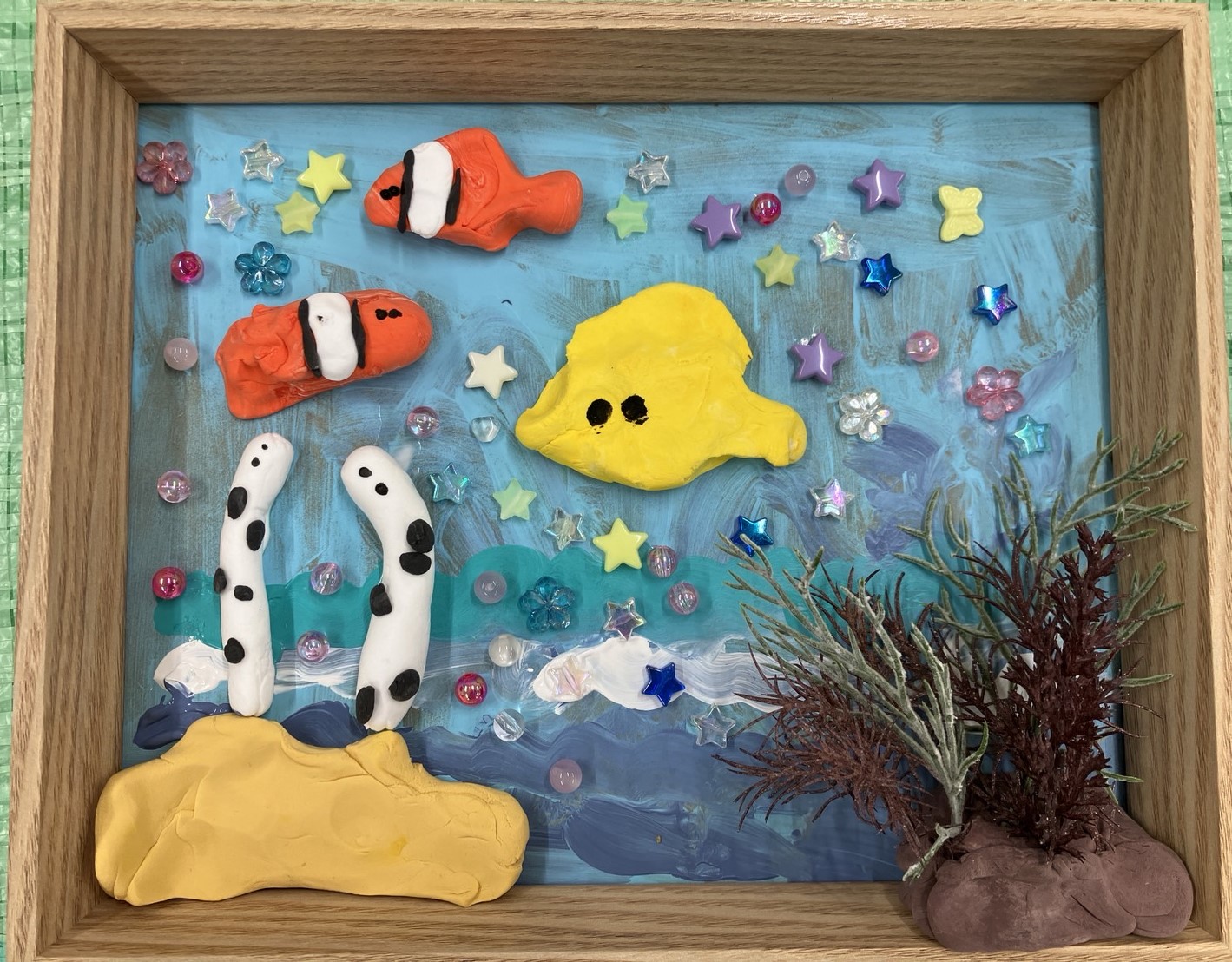 粘土や木材など、さまざまな材料を使って立体の作品を中心に作ってみましょう。