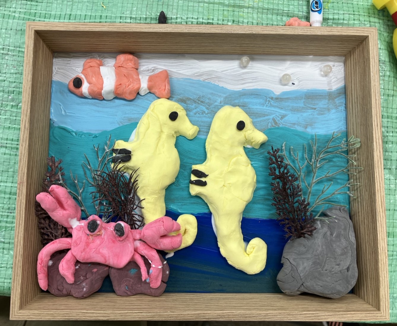 粘土や木材など、さまざまな材料を使って立体の作品を中心に作ってみましょう。