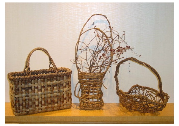 あけび、山ぶどう、バゴバゴ、籐など、素材の持ち味を活かし、趣きのある作品やモダンなデザインを取り入れた作品作りを楽しむことができます。つるをやわらかくして編んでいきますから、慣れてくれば形の幅も広がり、オリジナルの作品づくりが楽しくなります。ものをつくりながら生活に彩りを添えてみませんか。初心者の場合、まずは基本の花入れや持ち手つ付きのかご等を作りながら技法を学びます。