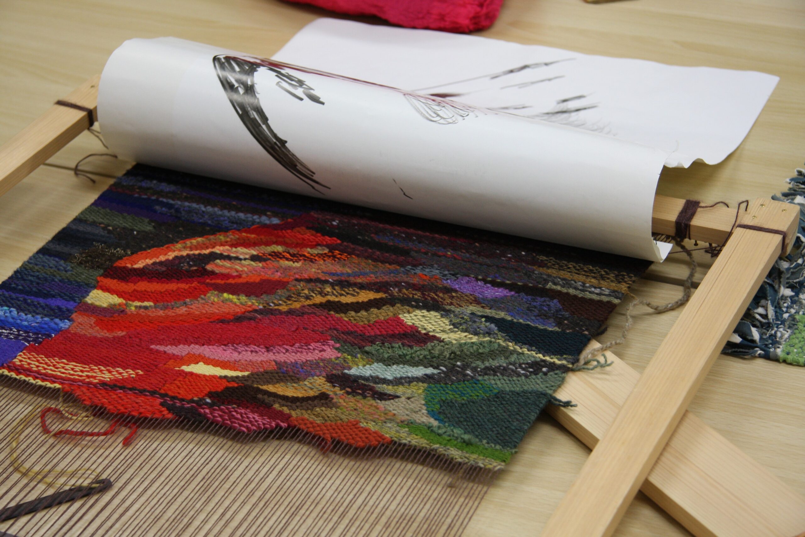つづれ織など徐々に幅広い織を学んでいきます。