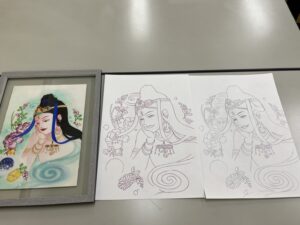 はじめのうちは、講師の描いた下絵になぞるところから心を込めて描いてみましょう。