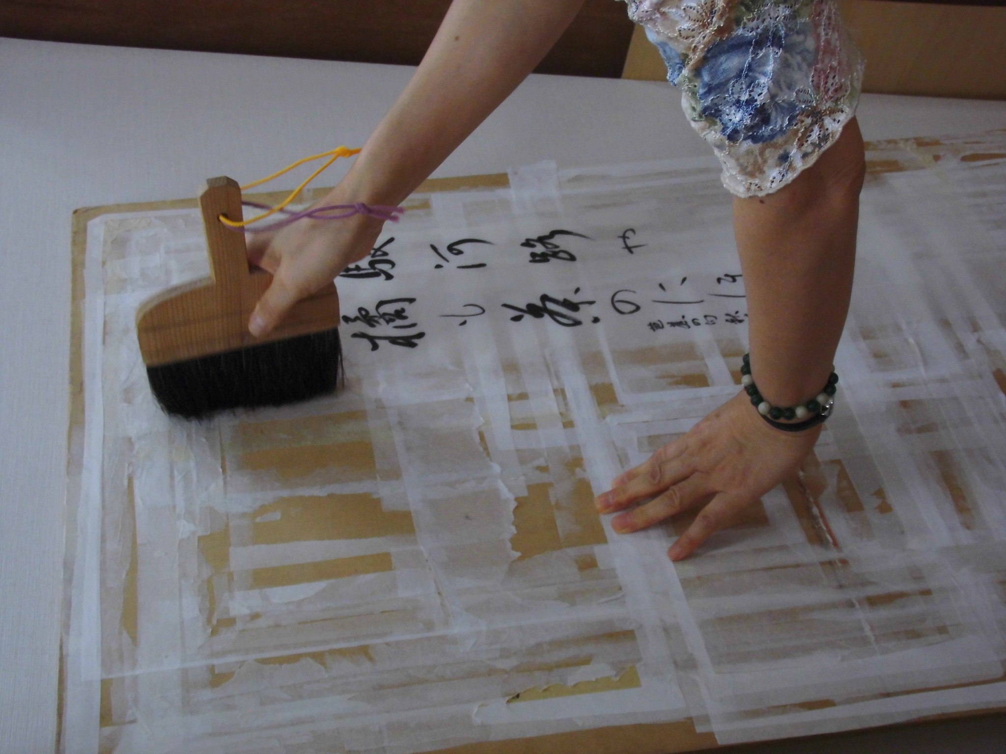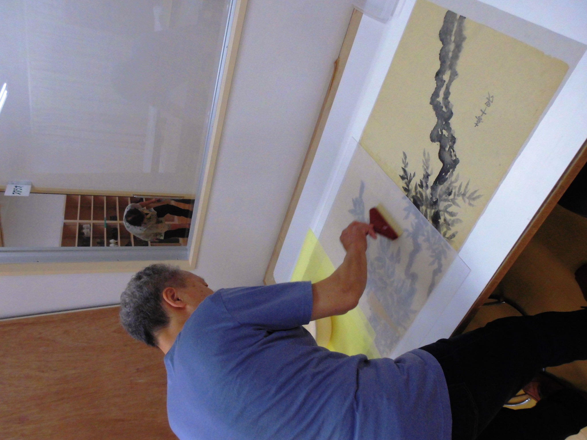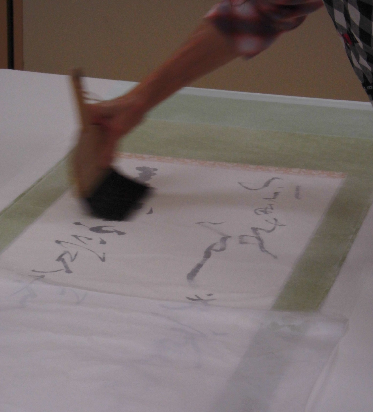 服装・持ち物 裏打ちしたい作品を2~3作品(サイズ:横幅40㎝×縦70㎝以内)(素材:紙、綿、絹など)(あくまで練習用の作品にして下さい)。雑巾。※3日前までにご予約下さい。道具は講師がお貸しいたします