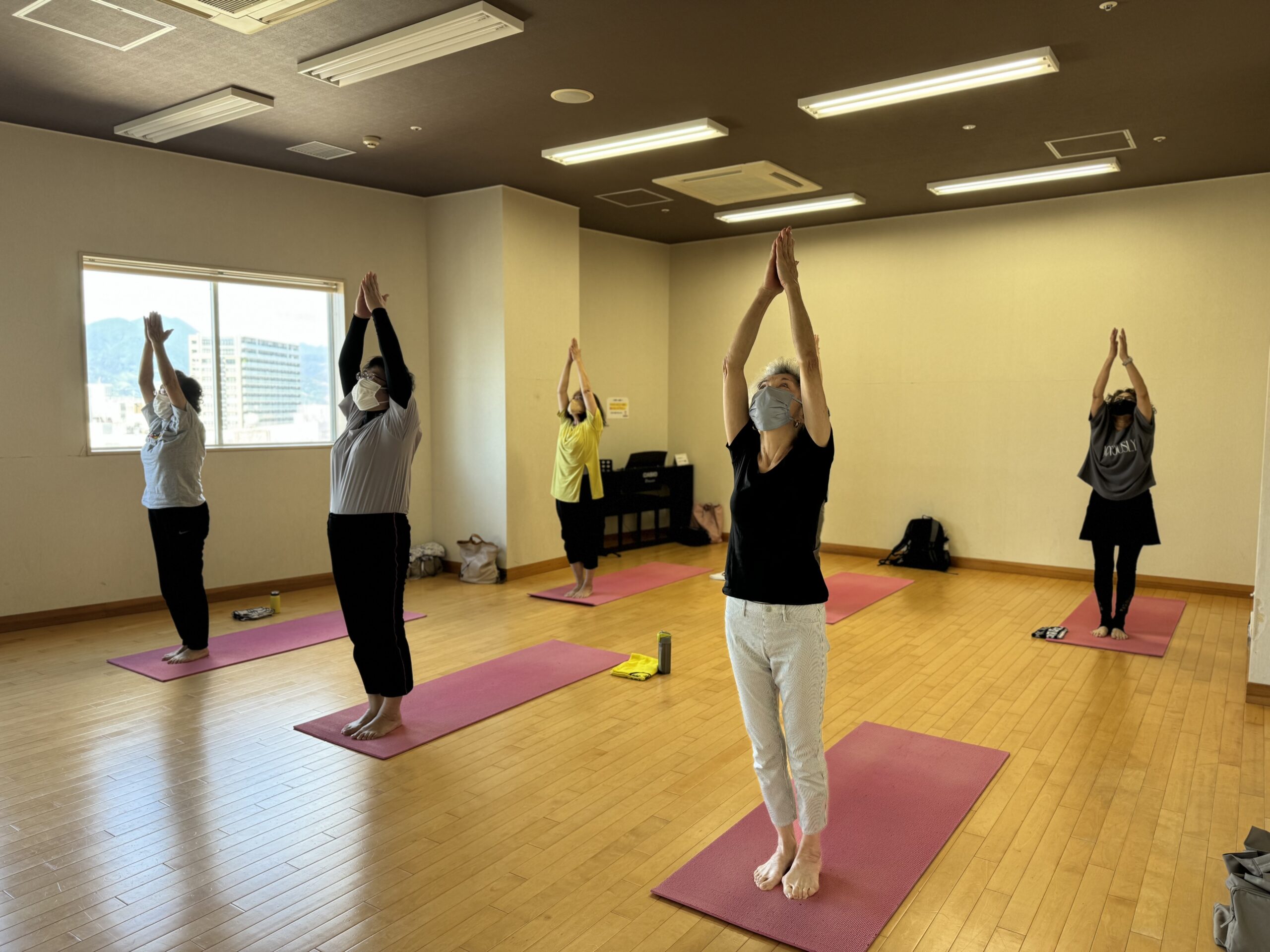 | 服装・持ち物 | ・運動のできる服装 ・タオル ・ヨガマット ・飲料水 |
