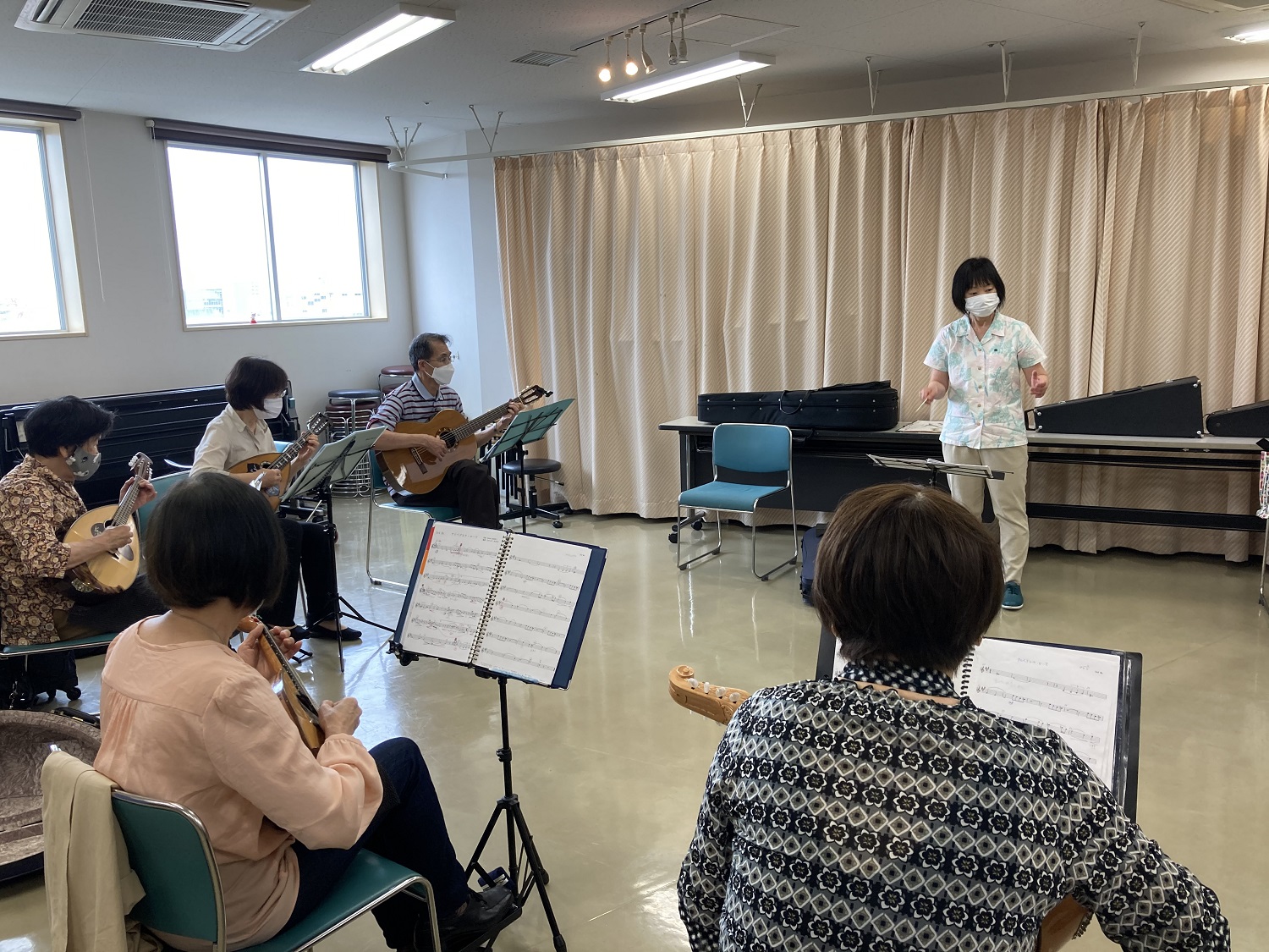 マンドリンはもちろん、ギターやマンドラ等の楽器を交えて演奏します。