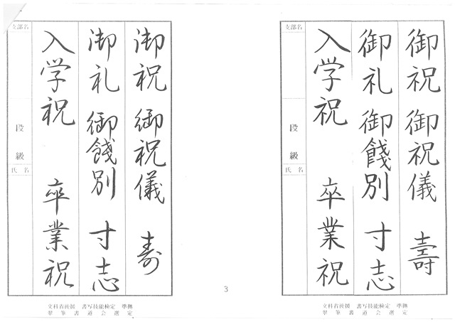 毛筆コースは原則段級の認定がありますが、段級の認定を望まない方(出品を希望されない方)は