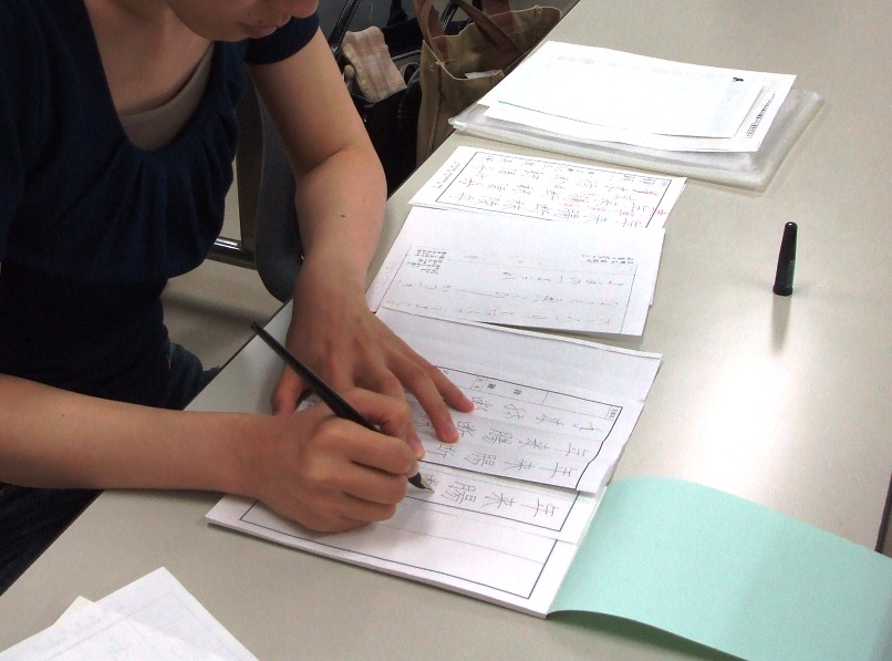 デスクペンを使用し、基本から始めます。段級の認定もあり、目標を持って取り組むことができます。