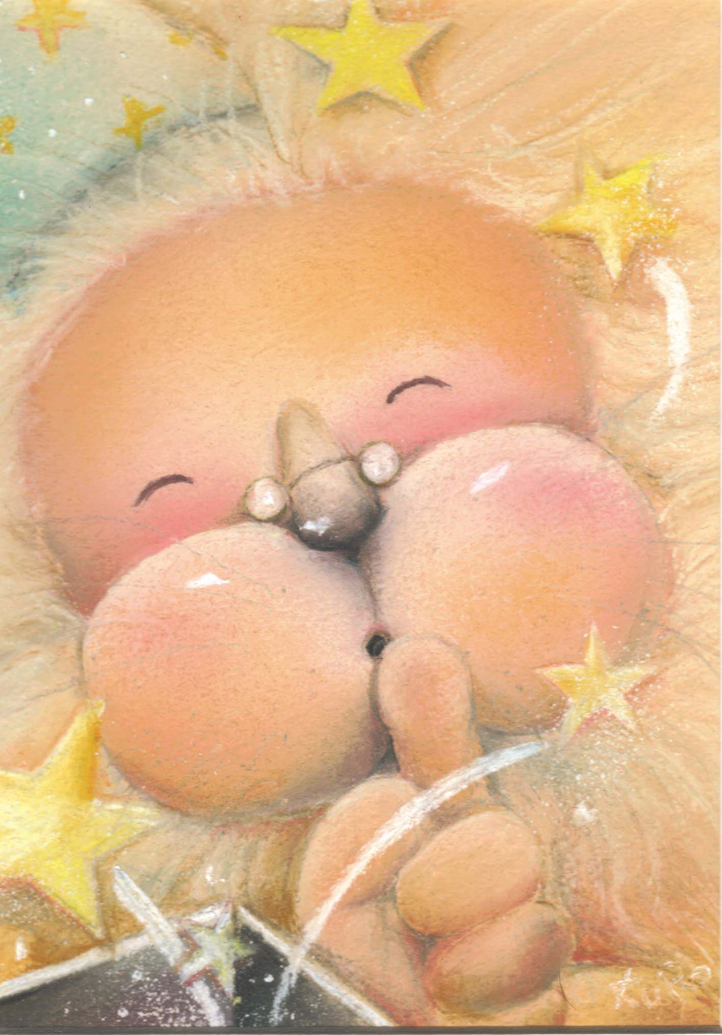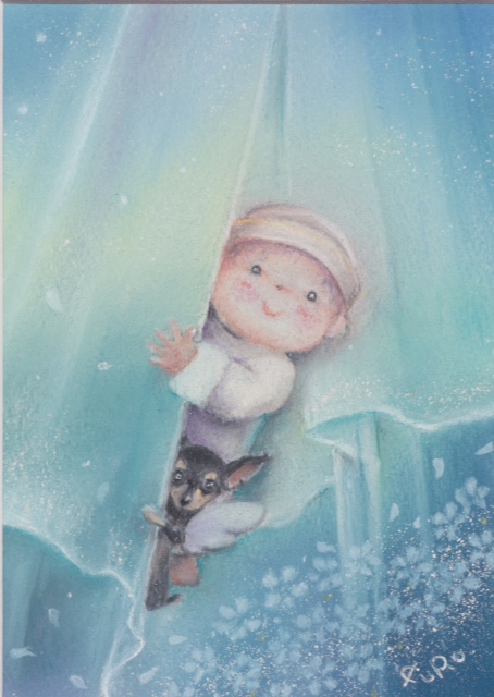 パステルを指で紙にこすりつけたりぼかしたりしながら、