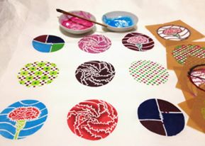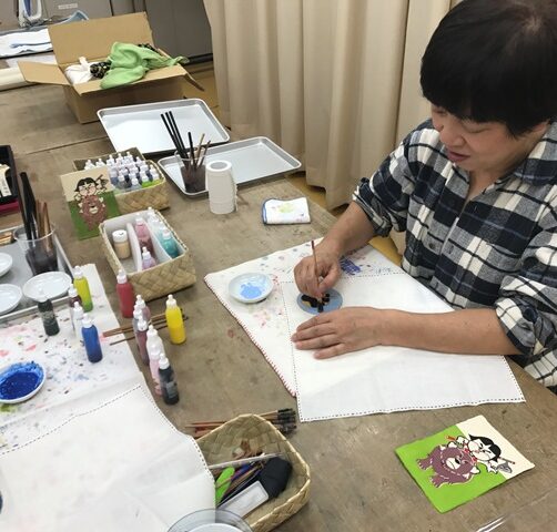 初めての方は、講師があらかじめ糊置きした型に、「色をさす」ところから始め、徐々にステップを踏んでいきましょう。