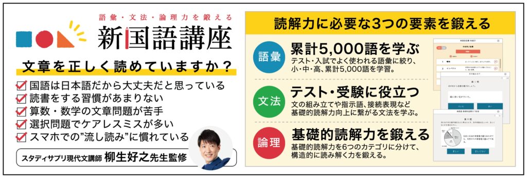 スマホでの”流し読み”に慣れているなどお悩みの方に、将来にわたりすべての勉強に必要な国語力を学習する機会を持ちましょう。