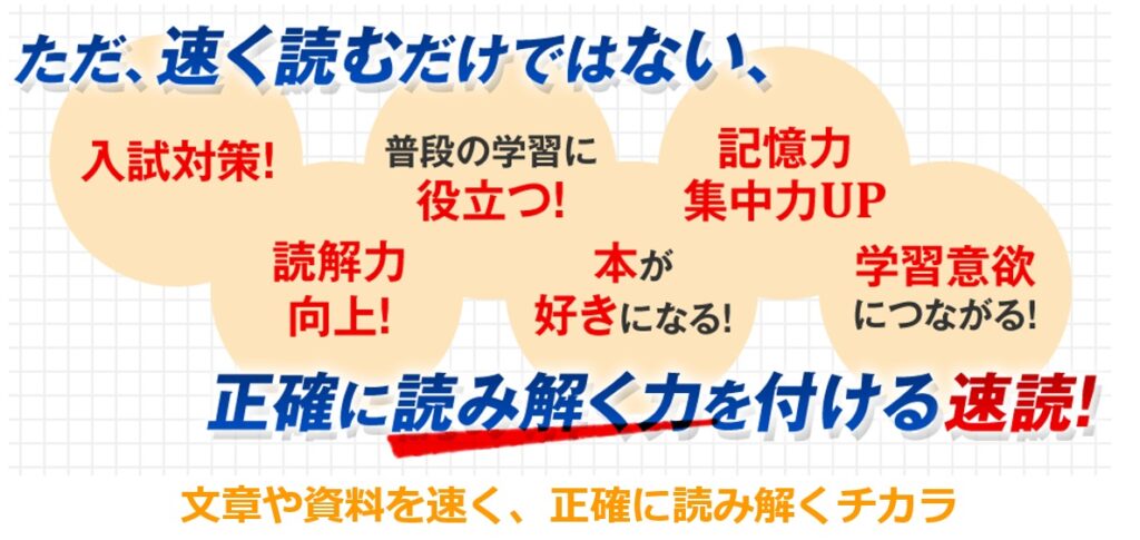 速読解力講座は、読解力と論理的思考力を鍛え、学業成績や受験対策、情報処理能力を向上させます