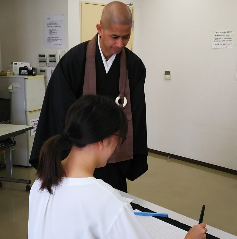 今月のお話(15分)➡椅子による座禅(15分)➡写経(60分)のペースで実施しています。