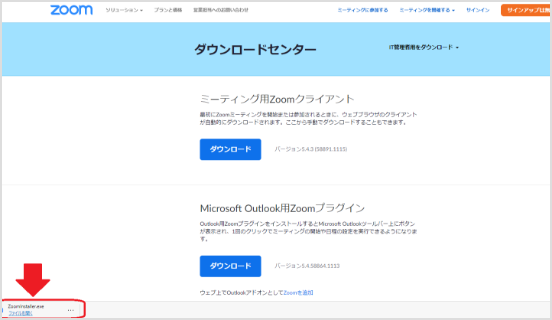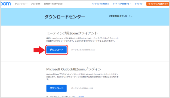 「ダウンロード」ボタンを押して、Zoomをダウンロードしてください。