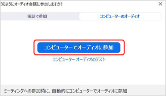 コンピューターでオーディオに参加をクリック。