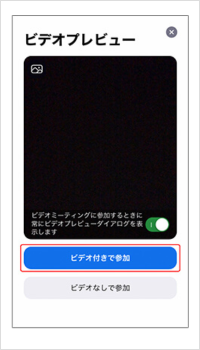 「ビデオ付きで参加」を選択してください。