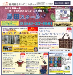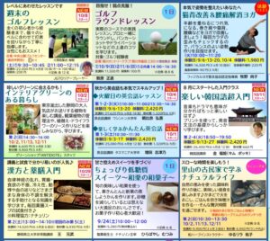 最新チラシのご案内 2022.09.07 最新の講座情報はコチラからご覧ください 画像をタップするとPDFファイルにて内容をご確認いただけます。 ファイル名をクリックしていただくと、ダウンロードしていただけます。 ◆2022年秋チラシ ■表面 ■裏面 ■LINEでのお問い合わせはコチラから ■メールでのお問い合わせはコチラから