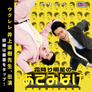 静岡朝日テレビ霜降り明星のあてみなげ(深夜0:15~)にて、ウクレレ講師の井上先生が出演されます。