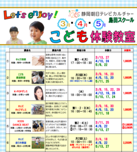最新!講座情報 2023.03.04 最新の講座情報は、コチラからご覧ください。 画像をクリックすると内容をご確認いただけます。 ★2023 春チラシはコチラ(画像をクリック) ★ KIDS体験会チラシはコチラ(画像をクリック) ★2023総合パンフレットはコチラ(画像をクリック) ★ホームページ限定企画はコチラ(画像をクリック)