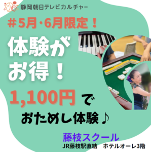 2025年5月・6月限定!通常1,650円~3,025円の体験レッスンが、期間中1,100円でおためし体験できます♪