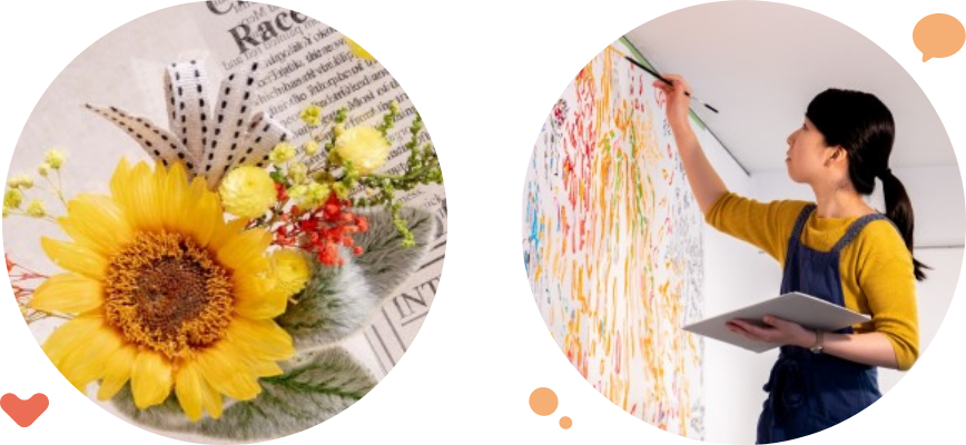 誰にでもできます。センスの無い手先の不器用な私でも、作品を都度発表して、他の方から刺激をもらいます。毎回完成するので、家族に見せます。アートに無縁でしたが、友人にも見せています。